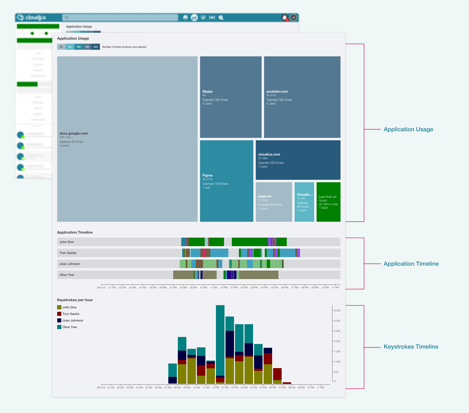 - Know how much time is spent on the applications and websites users open;